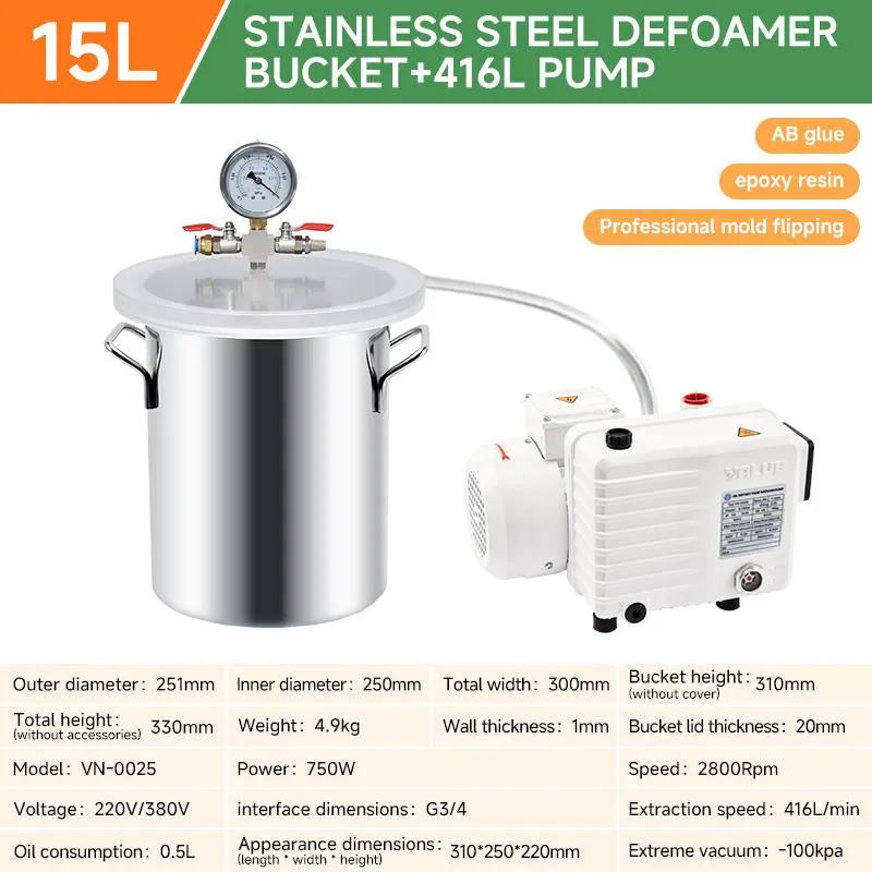 This 15L stainless steel bucket features a thickened 20mm transparent cover with a pressure gauge, precise dimensions (300mm width, 251mm OD, 330mm height), and a 4.9kg weight for effective foam control and process monitoring in laboratory or industrial liquid handling.