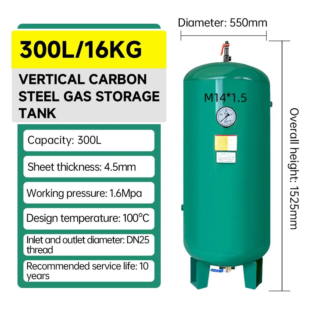 | 300L-16bar Vertical | 16 | φ550*1525 | 4.5 | / | 105 | 105 | DN25 |