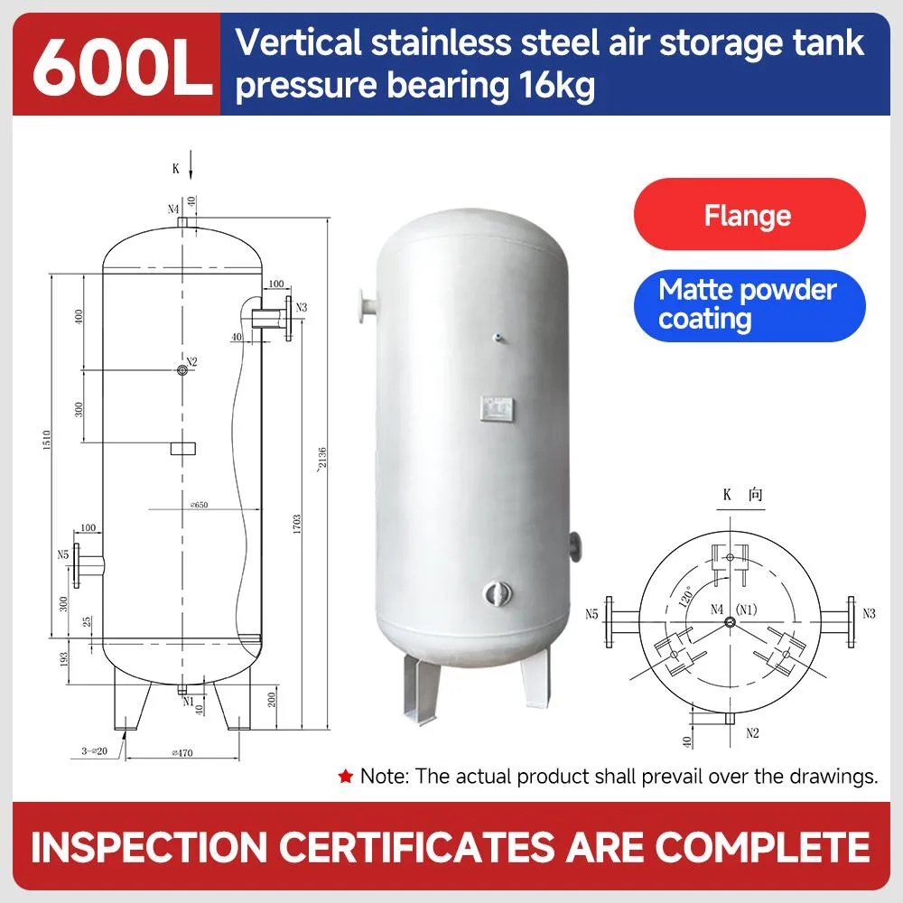 600L vertical design provides ample air storage, minimizing pressure fluctuations and enhancing the overall stability of the air system.