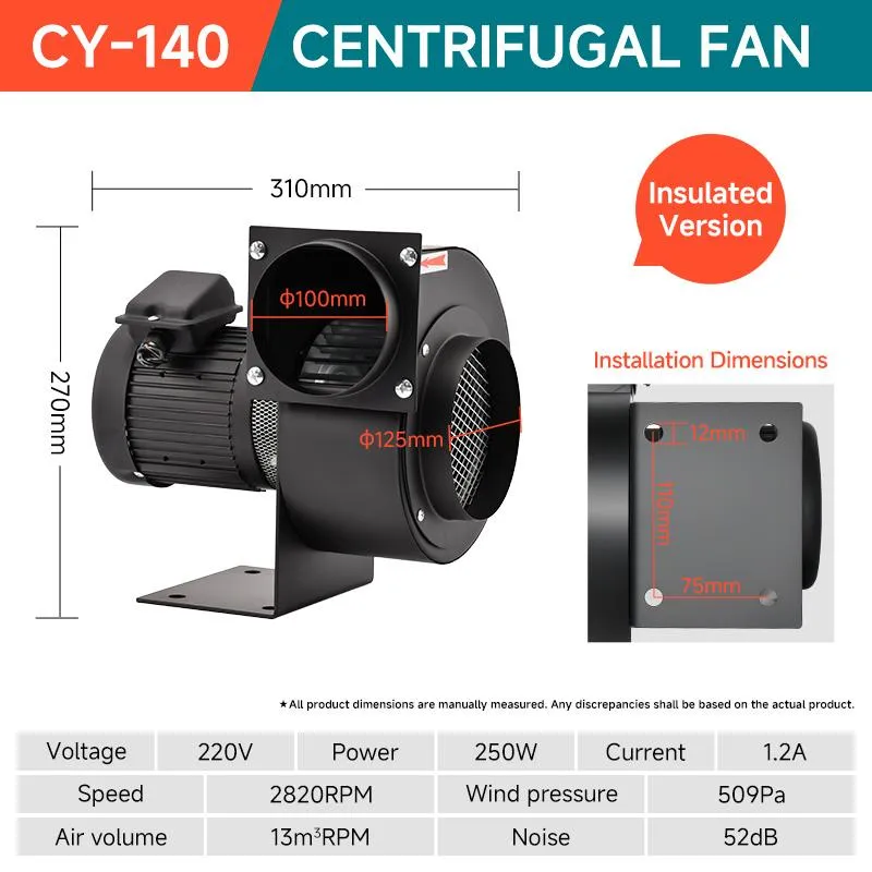 CY-140 Centrifugal Fan | 250W, 220V/380V (Standard/Insulated Version, Φ100/Φ125mm Ports)