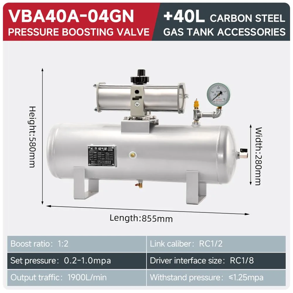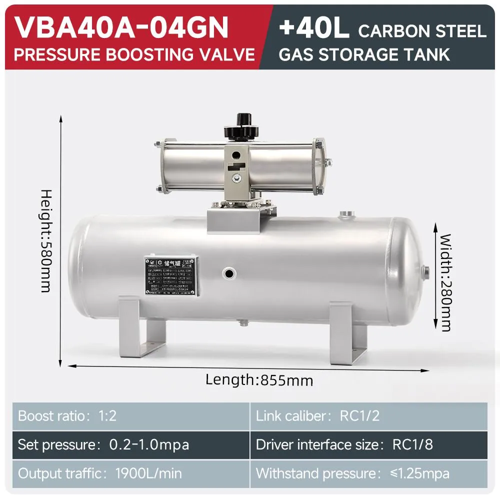 This robust system provides a 1:2 pressure boost, delivering a high output of 1900L/min within a 0.2-1.0MPa range via RC1/2 ports, and is integrated with a 40L tank for stable, high-volume air supply in large-scale industrial automation and pneumatic applications.