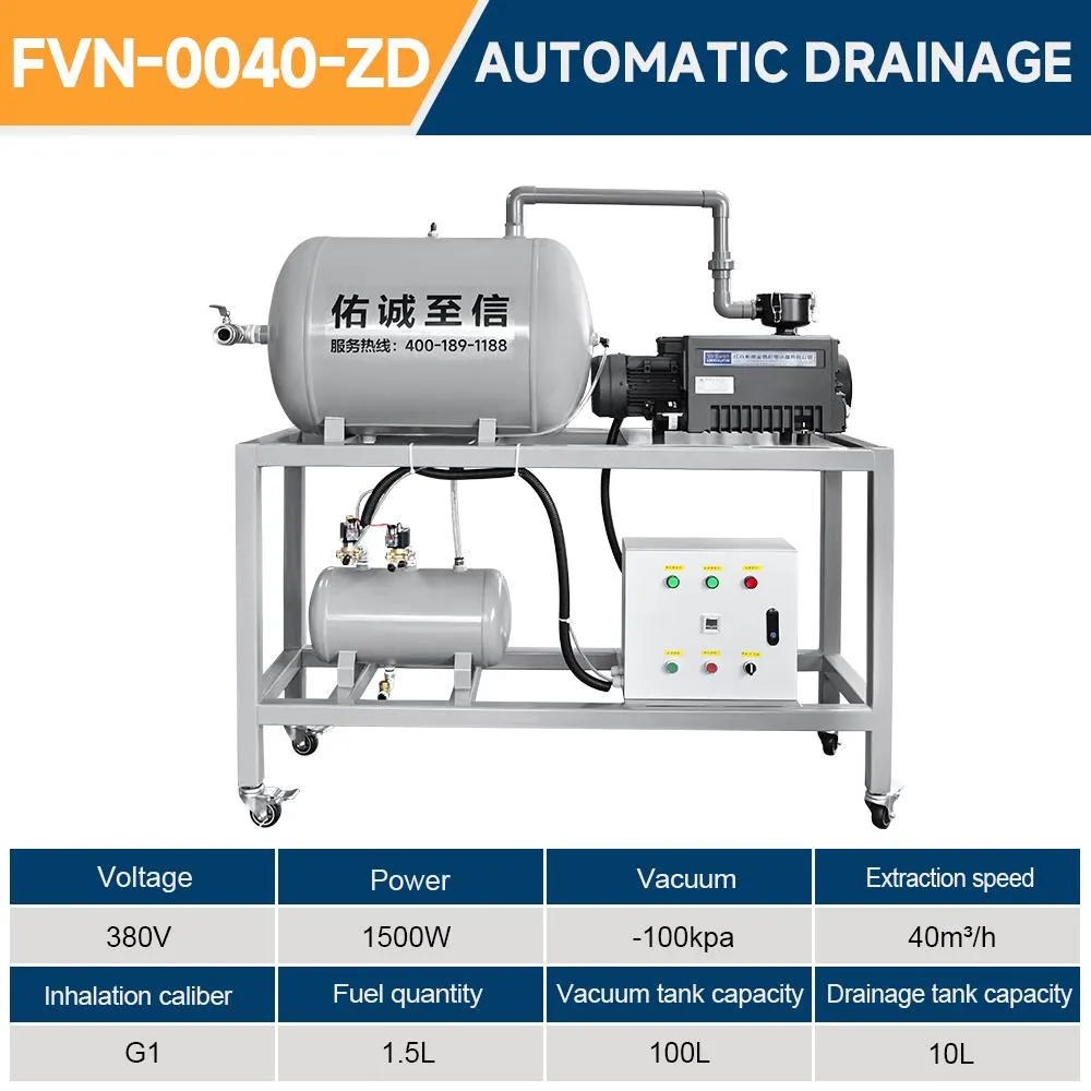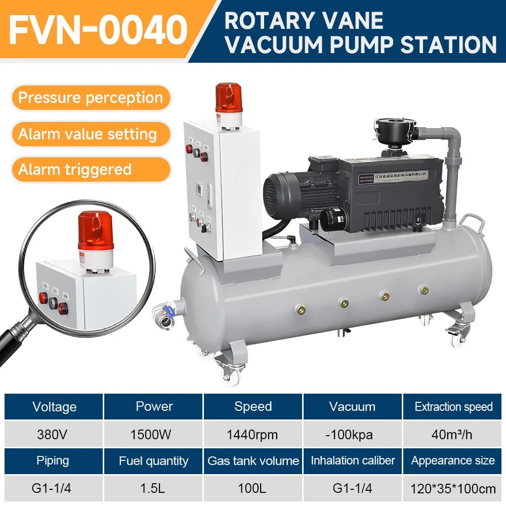 This 380V, 1500W series offers 40m³/h extraction speed and -100kPa vacuum, with 100L gas tank, G1/G1-1/4 ports, and optional alarm/auto-drainage functions, ideal for industrial vacuum applications requiring stable, mobile vacuum supply.