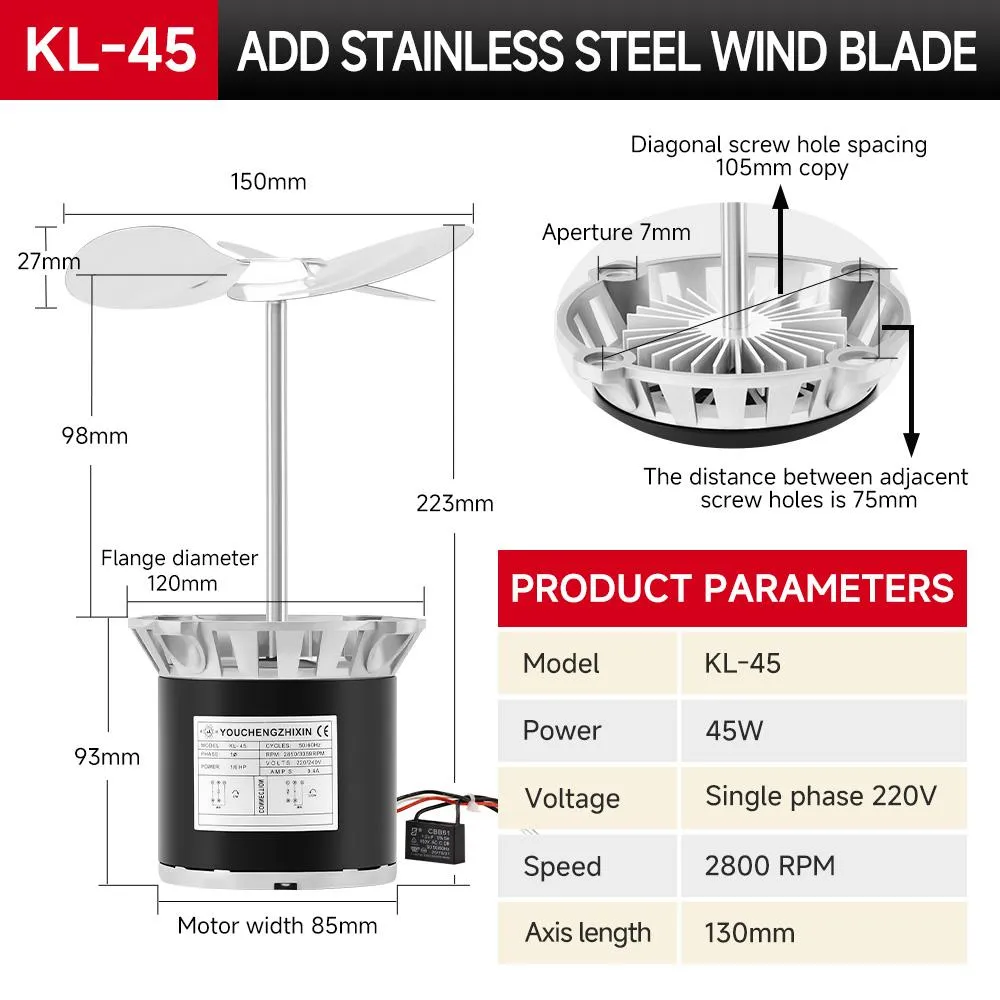 45W power, 220V voltage, 2800RPM speed, and a 130mm shaft, providing versatile solutions for ventilation, air movement, and industrial drive applications.