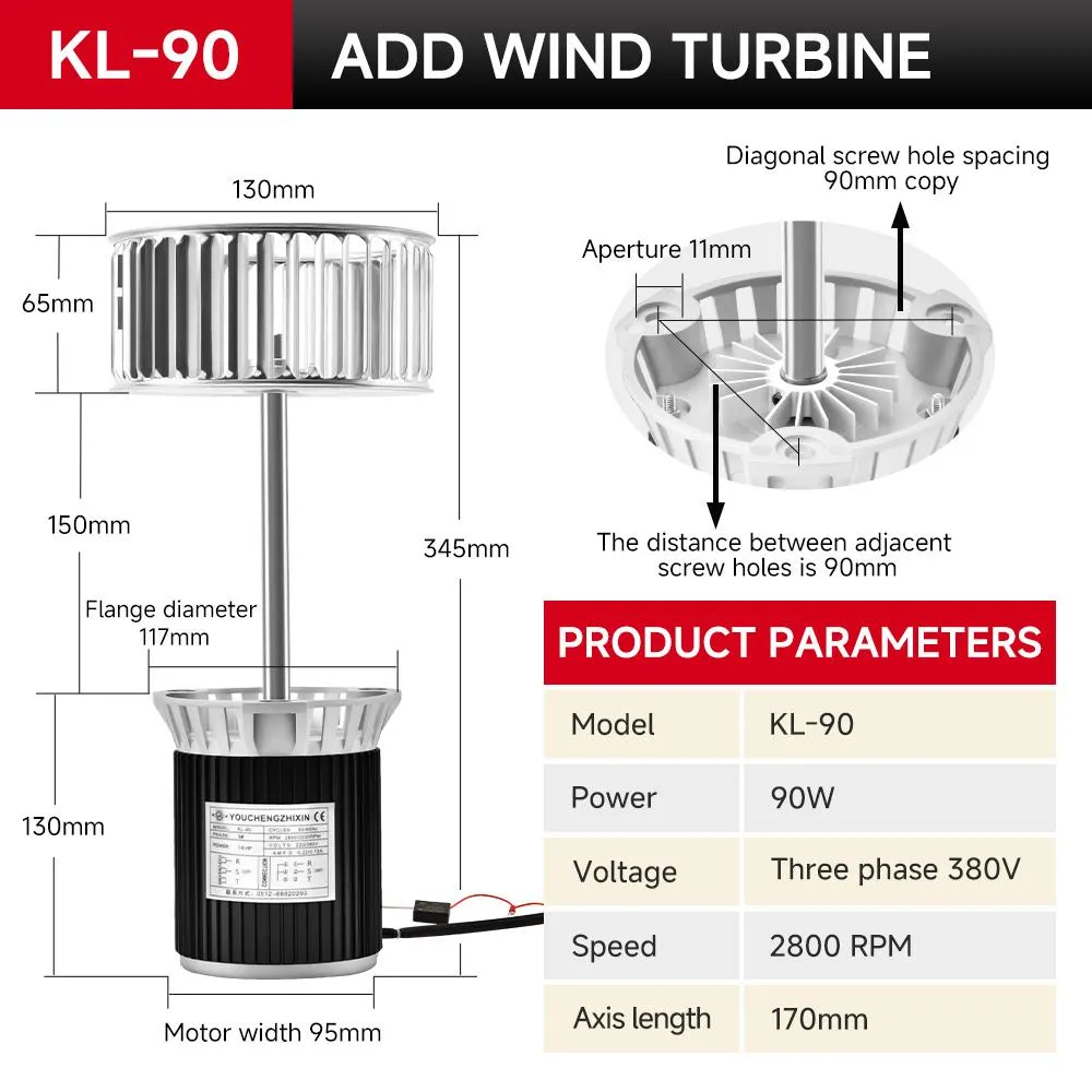 This motor features a long 170mm shaft, designed for ventilation fans and industrial drives. Available in Single-Phase (220V) and Three-Phase (380V) configurations, it delivers 90W power at 2800 RPM with a robust flange and 12.7mm shaft diameter.